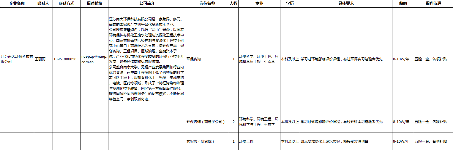 | 信息名称: | 江苏南大环保科技有限公司招聘信息 | ||