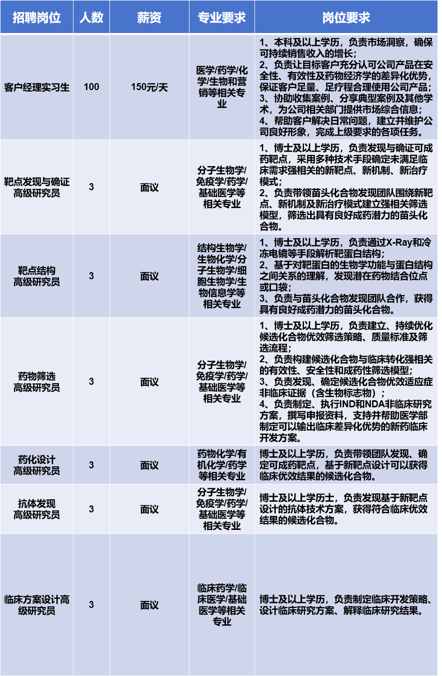 投递邮箱:hr@calt-bio.com